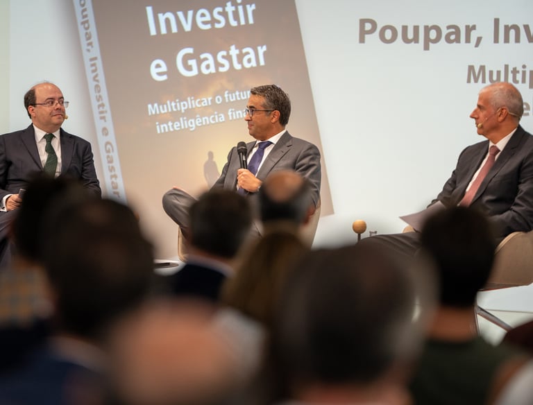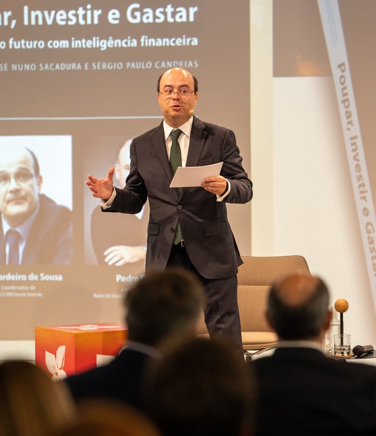 O livro Poupar, Investir e Gastar, complementado por formações dirigidas e workshops práticos, disponibiliza ferramentas claras para: