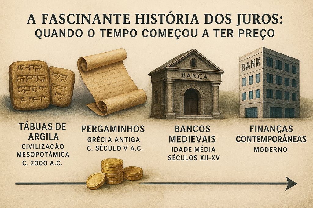 História dos juros numa viagem no tempo onde o “preço do tempo” vai ganhando forma, conflito e propósito.