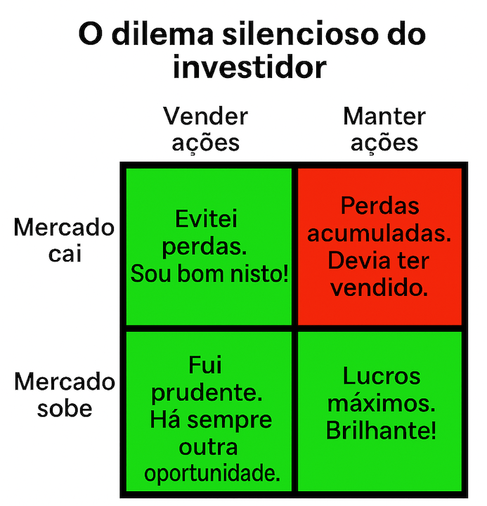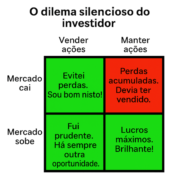 O dilema do investidor é, acima de tudo, psicológico. A decisão de vender ou manter não depende apenas de indicadores técnicos ou análises fundamentais — depende da capacidade de gerir emoções.