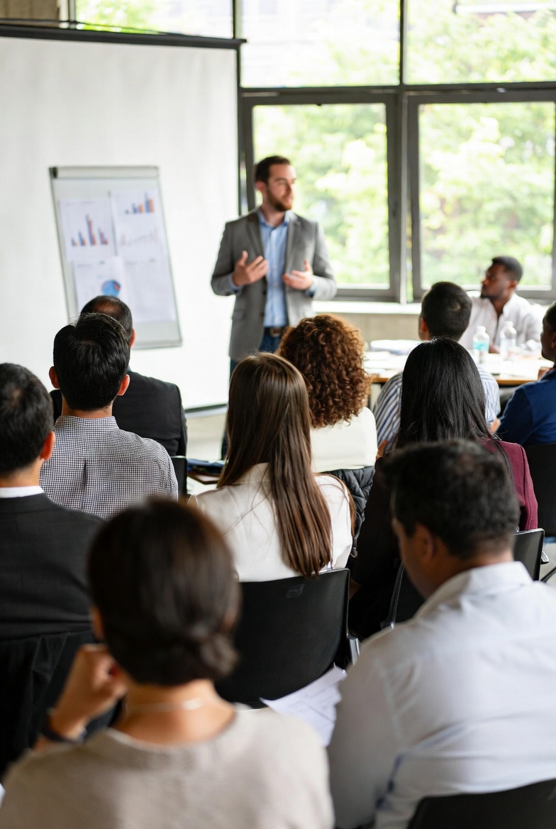 As sessões podem assumir o formato de workshops pontuais (1h–2h) ou programas estruturados, adaptados à dimensão e objetivos da empresa.
